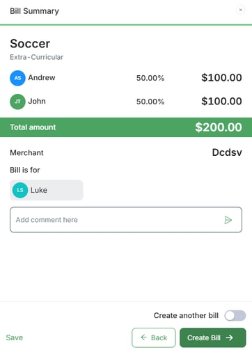 5. Take a moment to review your bill details and include any comments if needed. Upon completion, click Create Bill.