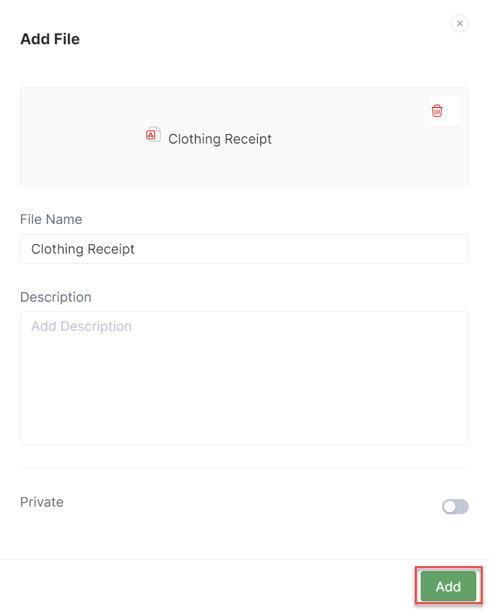 4b. If you click on Add Receipt, you'll upload the file directly from your device without adding any details.