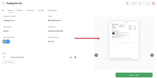 5. Once the file is added, you'll see a preview of the receipt on the right side of the page. Also, you can add more files if needed.