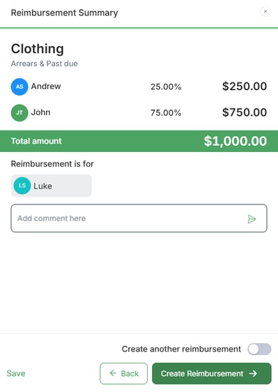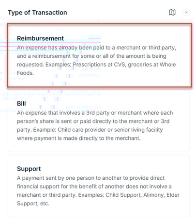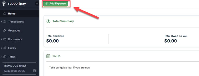 A reimbursement in SupportPay is an expense paid by one family member that others are expected to repay, either partially or in full. To add a reimbursement expense, follow the instructions below: