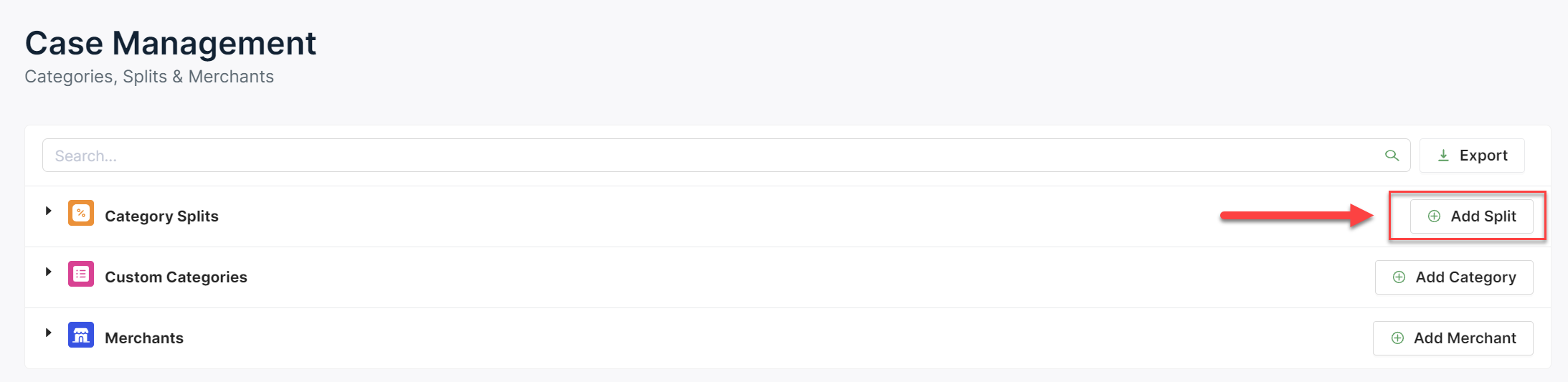 2. Click on the Add Split button all the way to the right of the Category Splits tab.