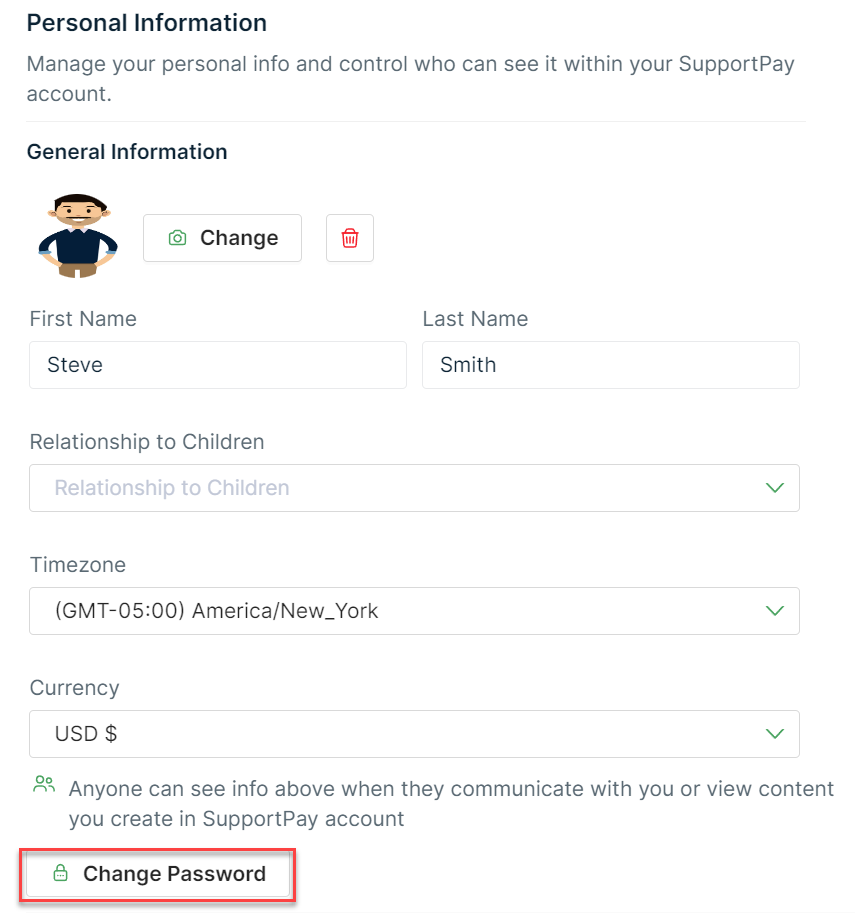 Changing the password of your SupportPay account is easy. Follow these simple instructions below: