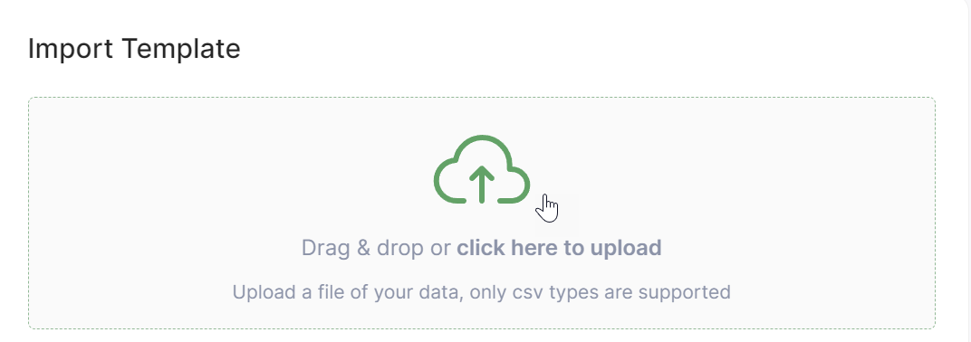 4. When prepared, upload the CSV file with your data in the Import Template section.