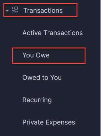 1. Navigate to the Transactions tab in the left-hand-side menu and click on the You Owe section.