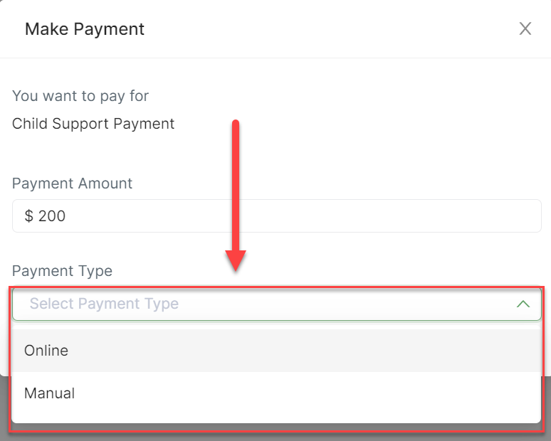 IMPORTANT: Please note that manual payments are only entries created in SupportPay for your own records for payments made outside of our platform. If you intend to transfer money within the SupportPay platform, you must use the "Online Payment" option.