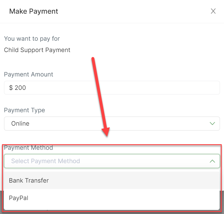 4a. If opting for an Online payment, choose from the available options (PayPal or Bank Transfer) and follow the provided instructions. (Note: To use this option, both you and the recipient MUST be registered for bank transfers or PayPal payments in SupportPay.)