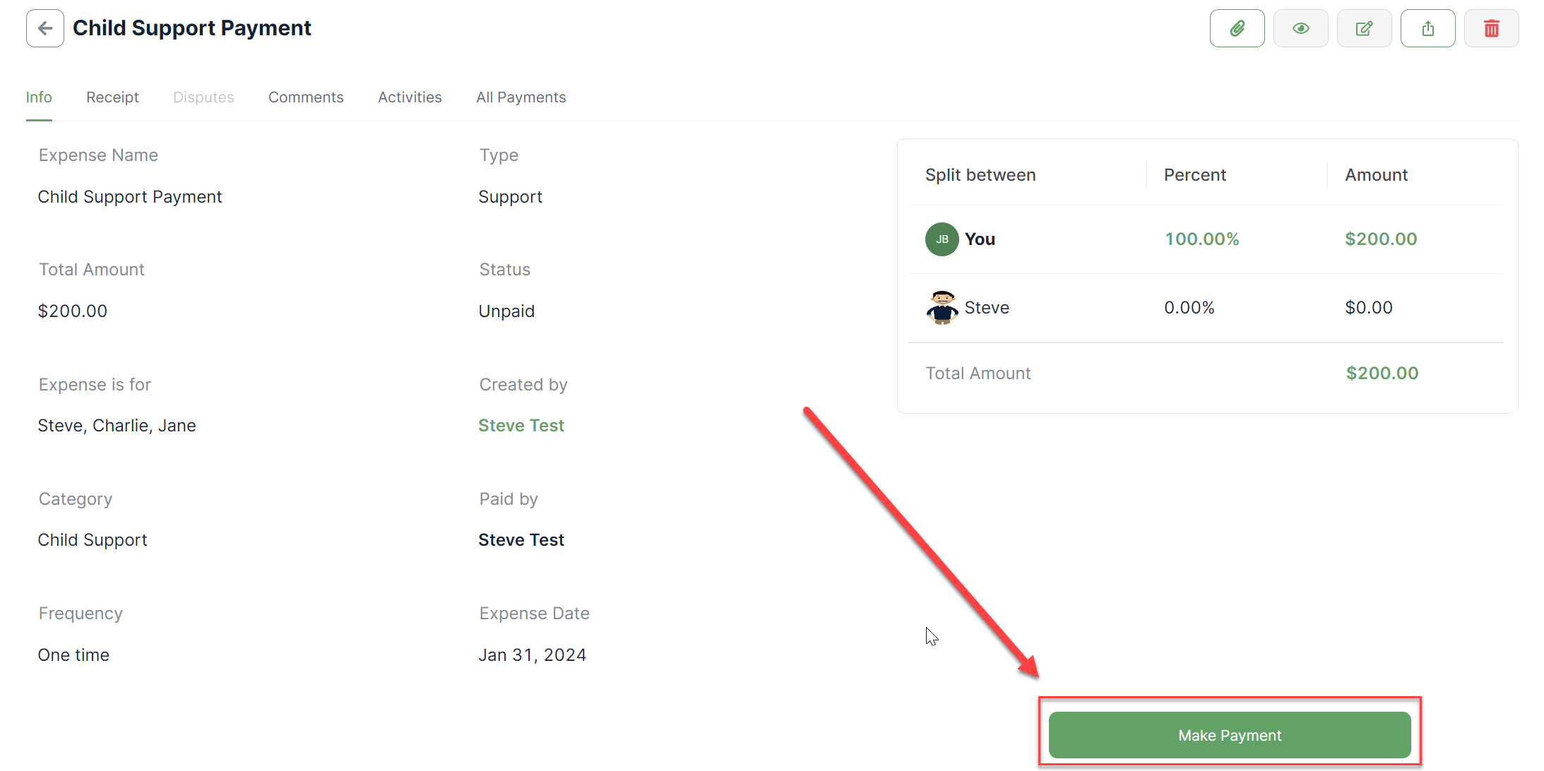3. On the details page, click on the Make a Payment button.