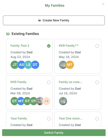 2. Select the family you want to switch to. Then, click on Switch Family.