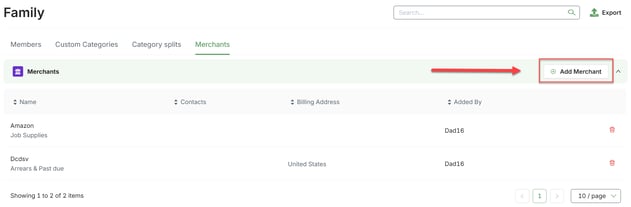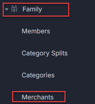 1. Click on the Family tab at the left-hand side menu and select Merchants.
