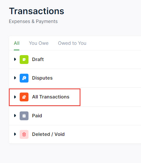 - On this screen, you'll see different sections for your transactions (Expenses and Payments). You can expand each of the sections to view specific data. To view all your transactions, click on All Transactions.