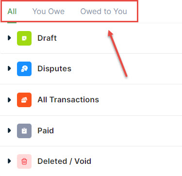 - Last, you can view only the items you owe/owed to you by switching between the All, You Owe, and Owed to You tabs.