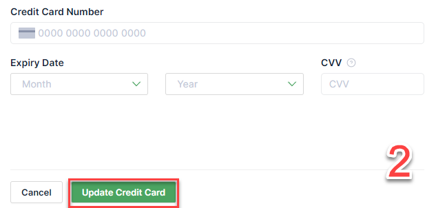 Click on the Update button next to your current payment method, then enter your new credit card details and click on the Update Credit Card button.