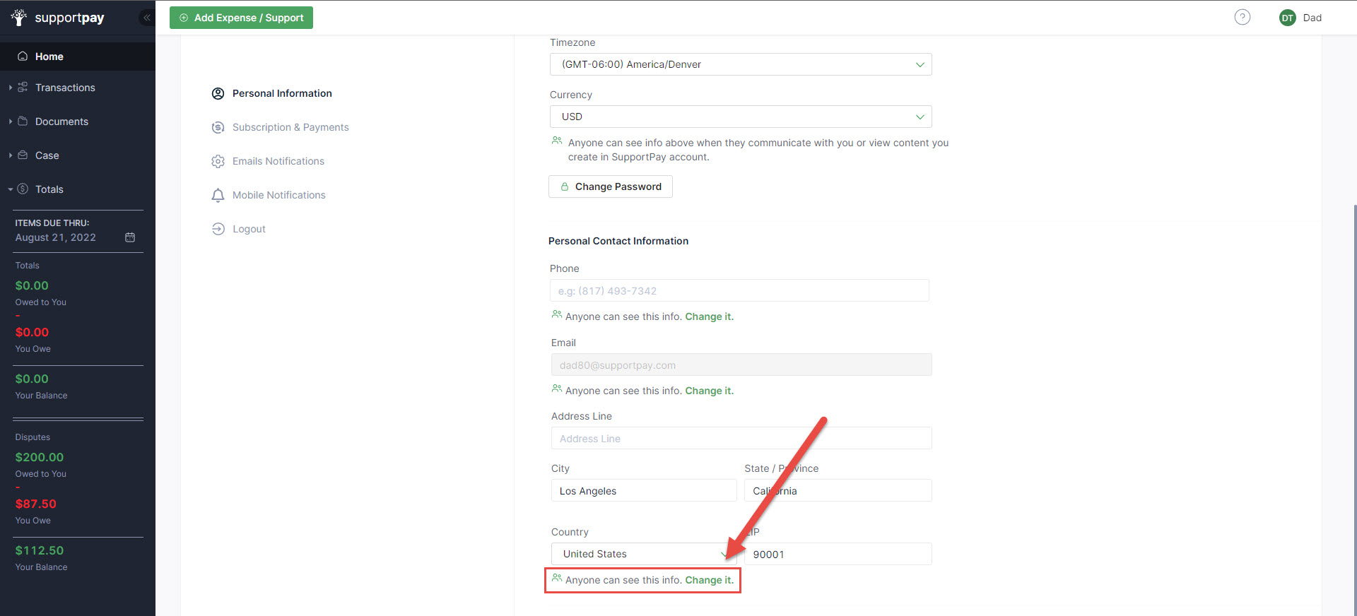 At SupportPay, we value your privacy and understand that you might want to keep your personal information private from the other parent. If that's the case, please follow the instructions below: