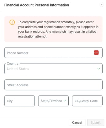 1. Enter your bank account personal information. This information must match exactly as it appears on your bank account.
