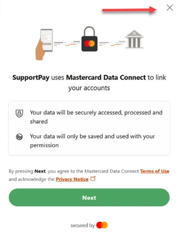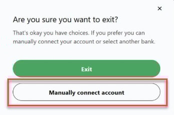 2. On the following screen, click the “X” in the top right-hand corner, then select the “Manually connect account” option.