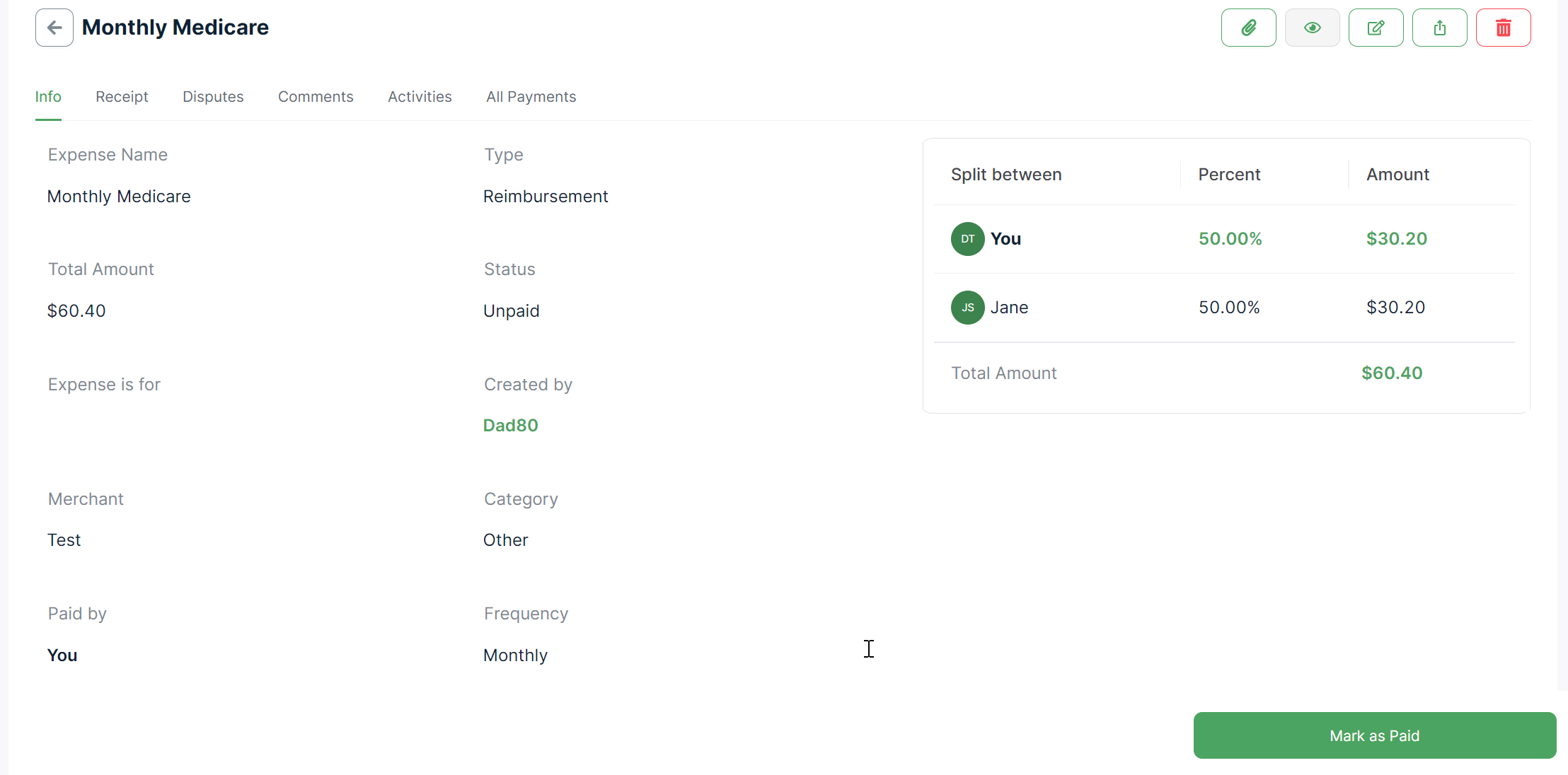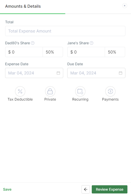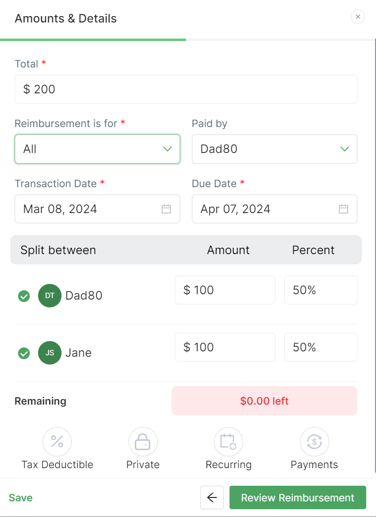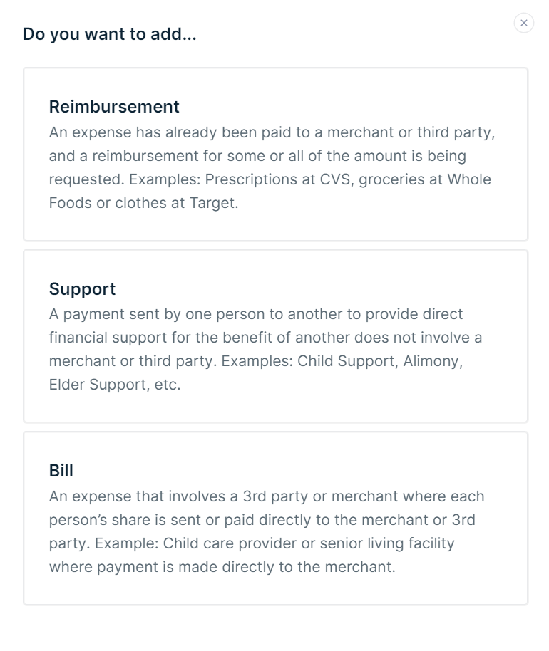 In the previous version of the app, users could choose to add either an expense or support through the "Add Expense/Support" option. We've not only enhanced this functionality but also refined the terminology to offer a more intuitive experience. Now, you have the option to add a "Reimbursement Expense," "Support Expense," or "Bill Expense."