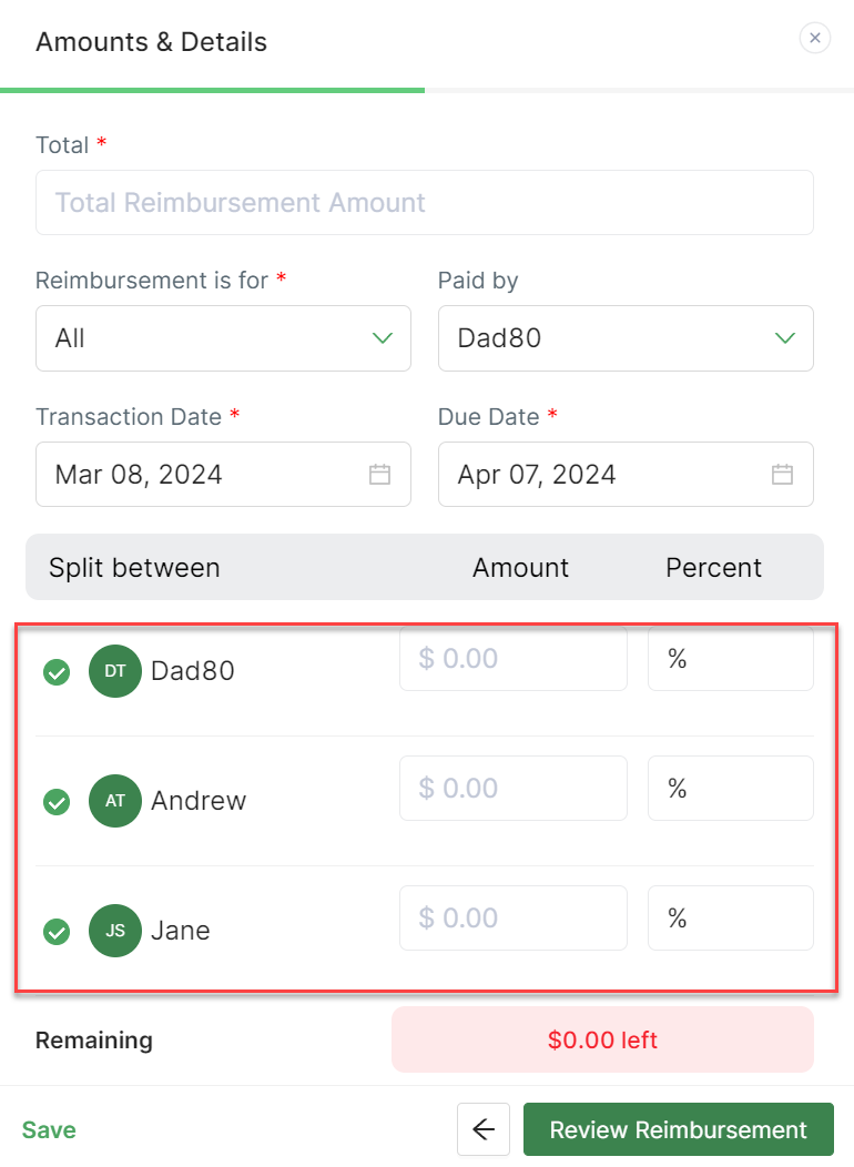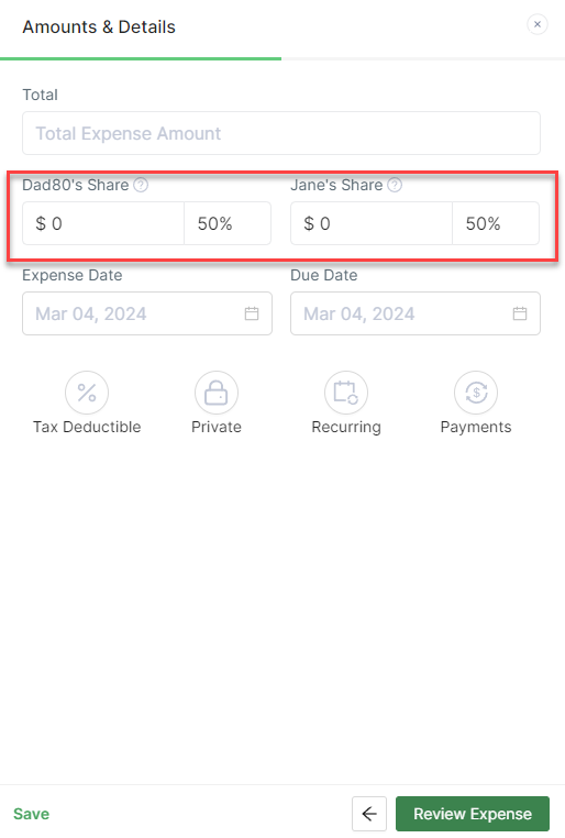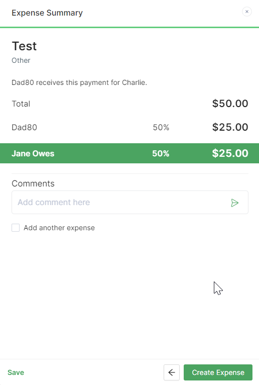Previously, expense splits defaulted exclusively between the two parents in the account. However, with the recent update enabling the addition of more than two family members, splits now default among all users who are not considered dependent persons. For a visual comparison between the old and new views, please refer to the screenshots provided below: