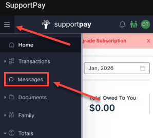 Log in to your account at my.supportpay.com , and select the family you want to message if required.
